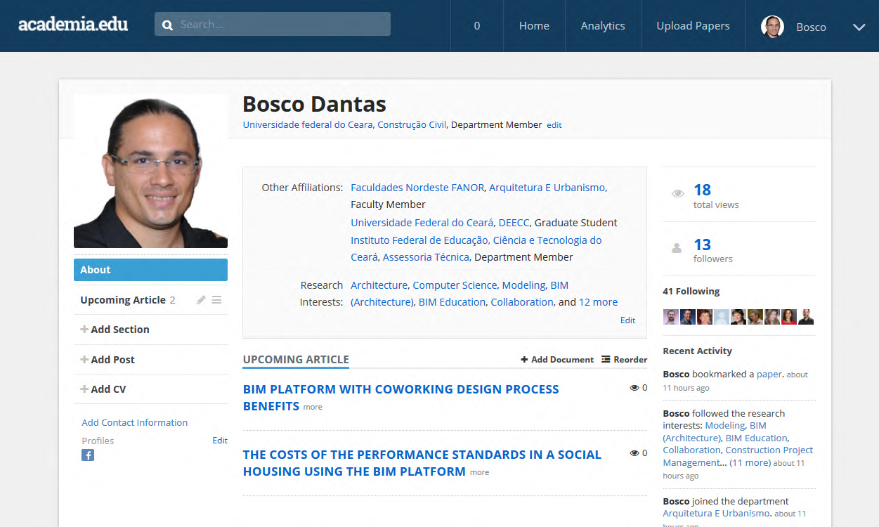Proporciona uma opção interessante para pesquisa científica permitindo a visualização dos autores da sua área de interesse, dos artigos compartilhados por eles e dos outros pesquisadores que seguem o teu trabalho ou são seguidos por ele.